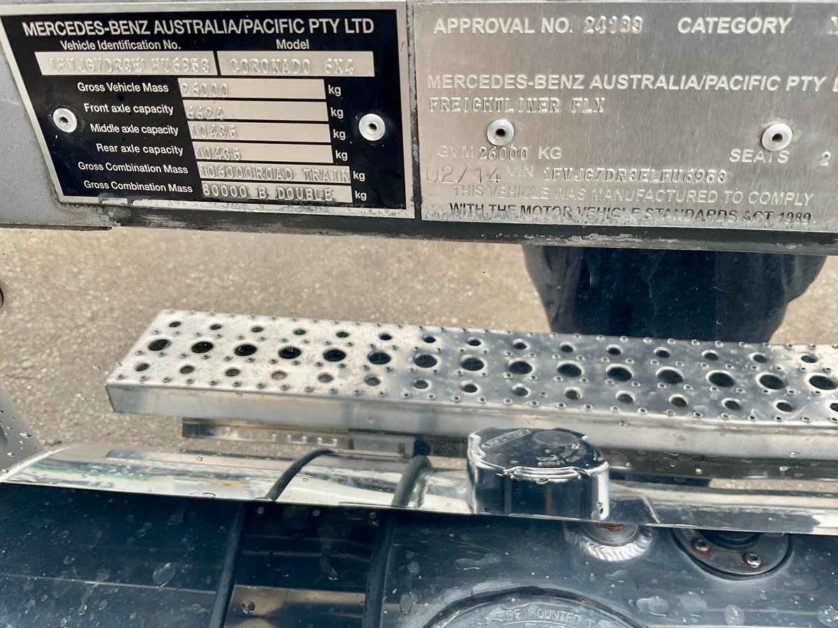 BIG CAB SEE PHOTOS ALL ORIGIONAL DUCO 80 TONNE B DOUBLE RATED106 TONNEROADTRAINRATEDFITTEDDETROITT DD15560 HPTURBO INTERCOOLEDENGINE18SPEE R/RTRANSMISSIONMERITOR46/160 DIFFSFULL CROSS AXLELOCKING DELUXE TRIMLIMITED EDITIONSEE TRIMAIR CONSTEREO CRUISE CAB COOLERSOLD AS TRADED.