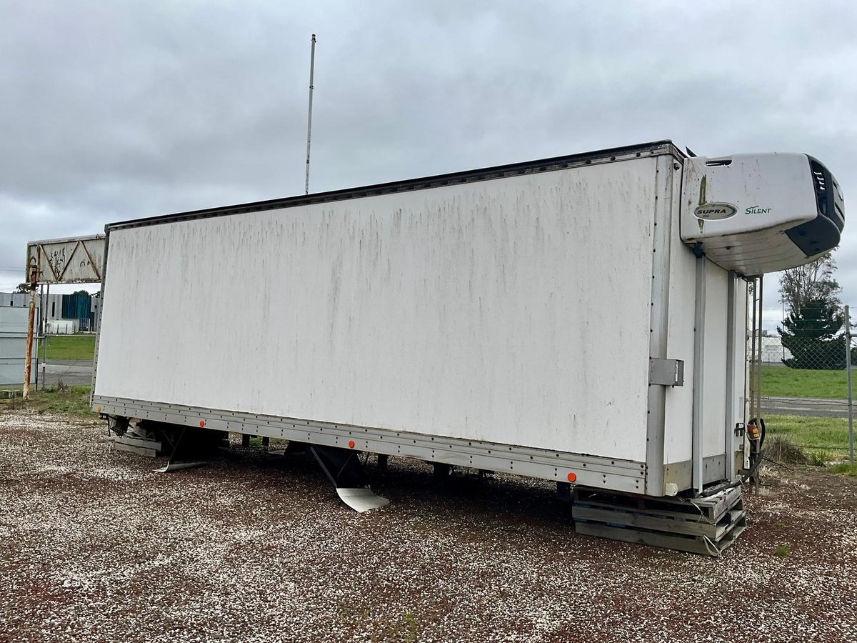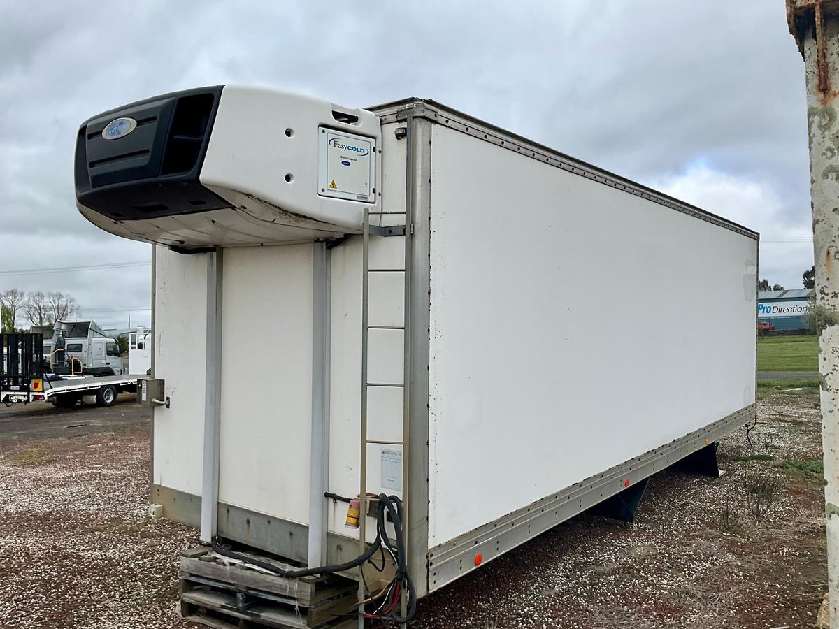 PEKI BODY ONLY WITH FITTED CARRIER FRIDGE UNIT PEKI INSULATED FIBERGLASS BODY TODCO DOOR REAR CARRIER SUPRA 950 SILENT FREEZER IN CAB CONTROLS 2190 HIGH 2,3 WIDE 2 PALLET 12 PALLET PLUS LONG