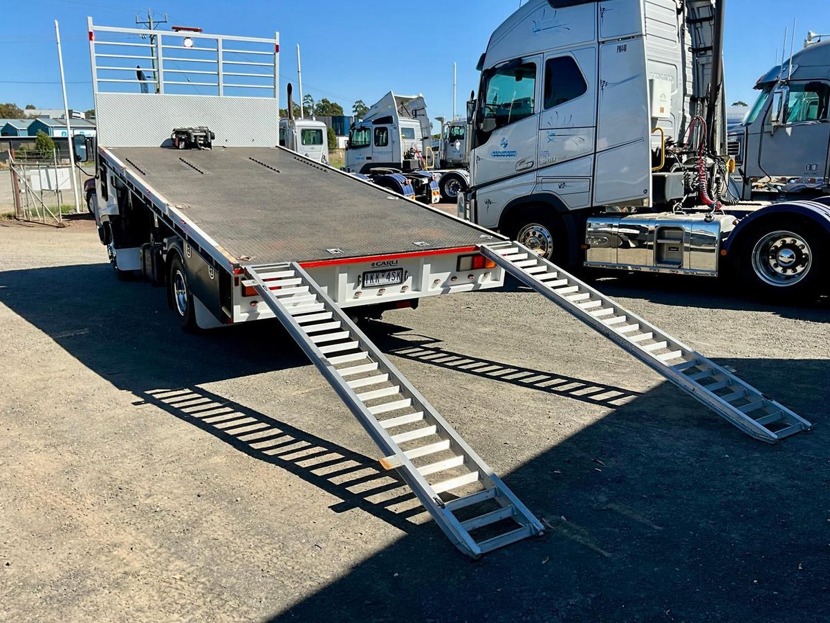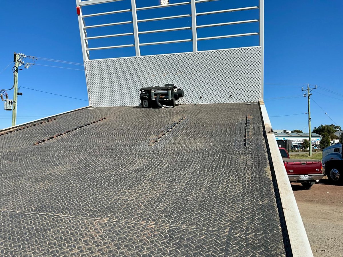 LOOK HARD TO GET SPEC FITTED TIPPING TRAY. OR TILT TRAY SUIT DRAG CARS COLECTABLE CARS BOBCAT EXCARVATOR WORKSHOP ETC TILT TRAY WITH REMOTE CONTROL. UNDER BODY HOIST WITH 2780 METRE RAMPS REMOTE OPERATION SEE PICS FITTED COMPRESSOR UNDER BODY ELECTRIC AIRWAVE 50L 2 HP WITH SIDE MOUNT HOSE REEL ALSO MAGNUM WINCH WITH REMOTE CONTROL EXTRA BATTERY WHEEL CHOCKS WITH ALL WHEEL STRAPING 2TOOL BOXES ETC EXPENSIVE BUILD USED ON DRAG CAR ETC CARLI ENGINEARING TRAY AND BUILD PHONE DETAILS FITTED LED LIGHTS SEE PICS ROTATING AMBER DEACON ALLOY BULL BAR CHROME WHEEL TRIMS EXCELLENT RUBBER SEE COND LOOK AT PRICE $38000 PLUS GST $3800 PRICE INC GST $41800. WE ARE 2ND GENERATION TRUCK A TRAILER DEALERS WITH OVER 50 YEARS EXPERIENCE LOCATED 1 HOUR MELB AIRPORT AT VIC JUST OF WESTERN HIGHWAY ONE ENTRANCE TO GPS ROAD SUBURB PIT AVAITABLE FOR MERCHANICAL INSPECTIONS ALL DETAILS =0=4=1=8=3=3-4=0=9-4= OR . TRUCK SUITS EXCAVATOR BOBCAT BEAVER TAIL BYERS RACE CARS FARM. TIPPING TRAY FINANCE AVAITABLE TO APPROVED PURCHASERS AT COMPETIVE RATES