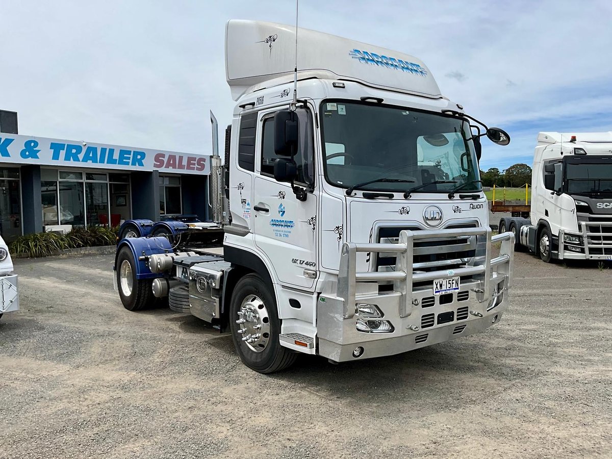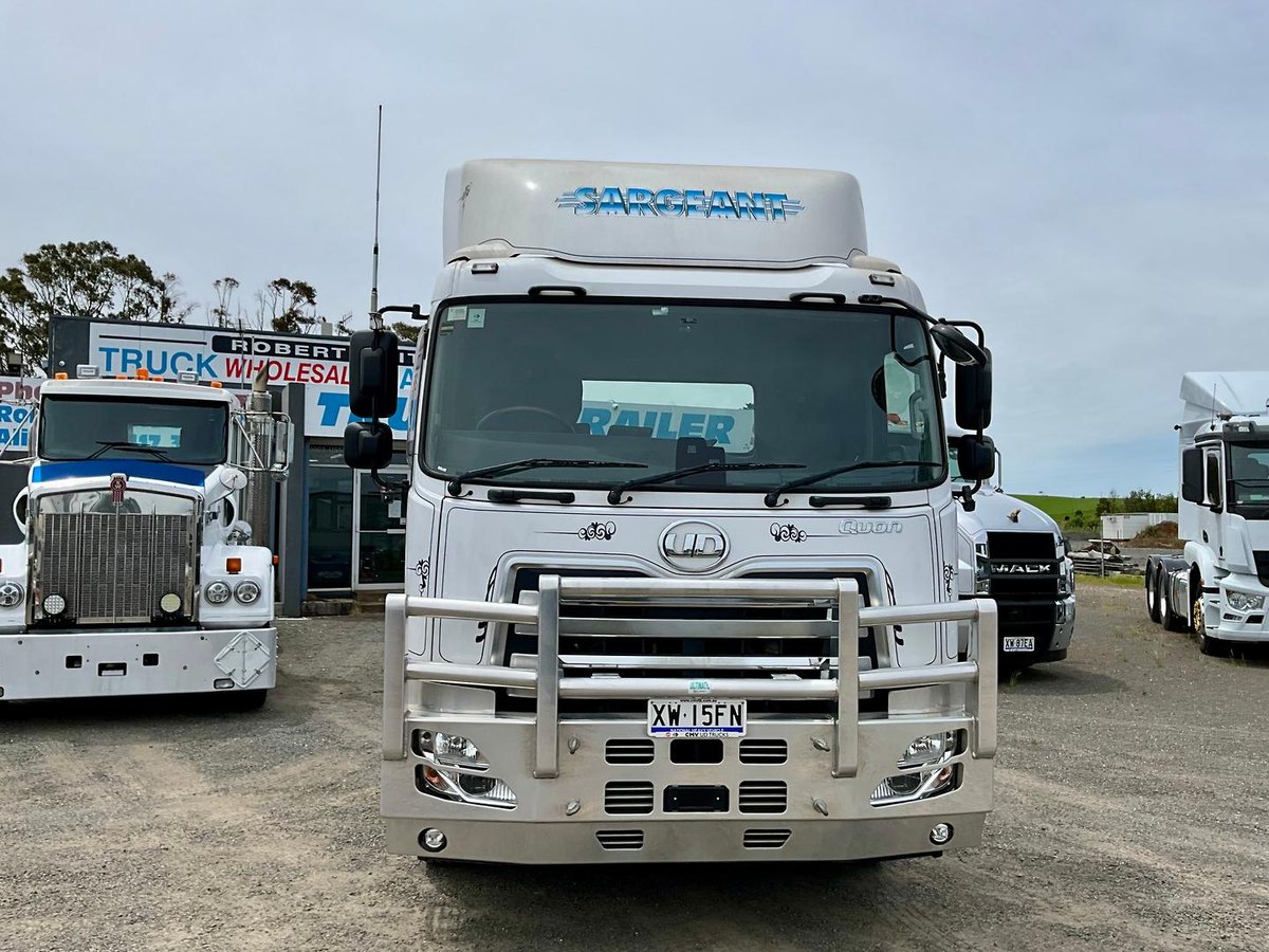 LOOK SUIT NEW BYER 2023 UD QUON 460 SINGLE DRIVE ONLY 32000 KLM 1505 HOURS TOTALLY BRAND NEW CONDITION FITTED 460 HP E5 ENGINE 12 SPEED I SHIFT VOLVO UD TRANSMISSION VOLVE UD DIFF WITH TRACTION CONTROL DISC BRAKES 4 POST BULL A FUPS BAR IDEAL HORSE FLOAT EMPEY CONTAINER CARRIIER BOGEY REFIRGATED VANS CAR CARRIER ETC WE SPECTED SINGLE DRIVE 45 TONNE GCM RIGHT WEIGHT SCALES ALCOAS SOLD VIC RWC PRICE PLUS GST $145500 GST $14500 PRICE INC GST $160000 FINANCE AVAITABLE TO APPROVED PURCHASERS AT COMPETIVE RATES THROUGH OUR FINANCE PARTNERS WE ARE 2ND GENERATION TRUCK A TRAILER DEALERS WITH OVER 50 YEARS EXPERIENCE LOCATED 1 HOUR MELB AIRPORT AT VIC JUST OFF WESTERN HIGHWAY ON ENTRANCE TO BALARAT ALL DETAILS OR PIT AVAITABLE FOR MERCANICIAL INSPECTIONS ALWAYS WELCOME TO BRING YOUR OWN MERCANIC might suit 6x4 Byers